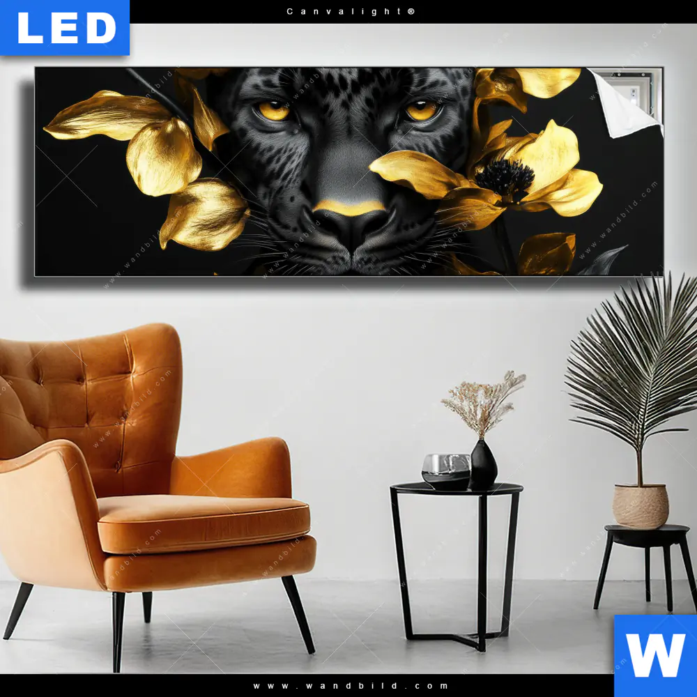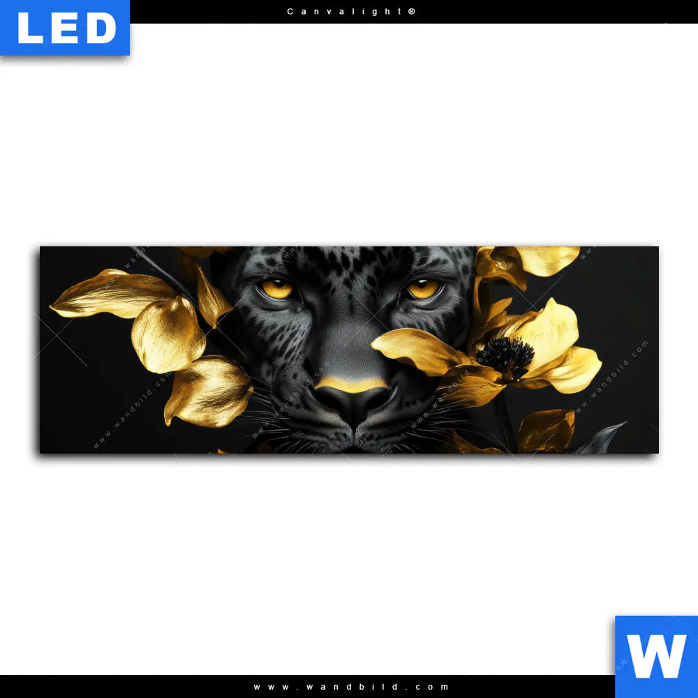 Canvalight® Leuchtbild | Goldblumen & Panther | Panorama