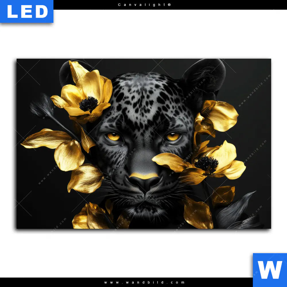 Canvalight® Leuchtbild | Goldblumen & Panther | Querformat
