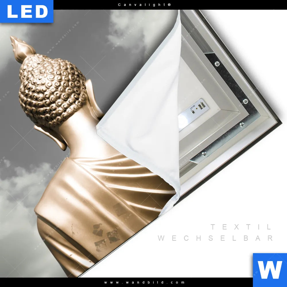 LED-Textilrahmen-Bild mit austauschbarem Buddha - Feng Shui Textil-Druck (Wechselbild)