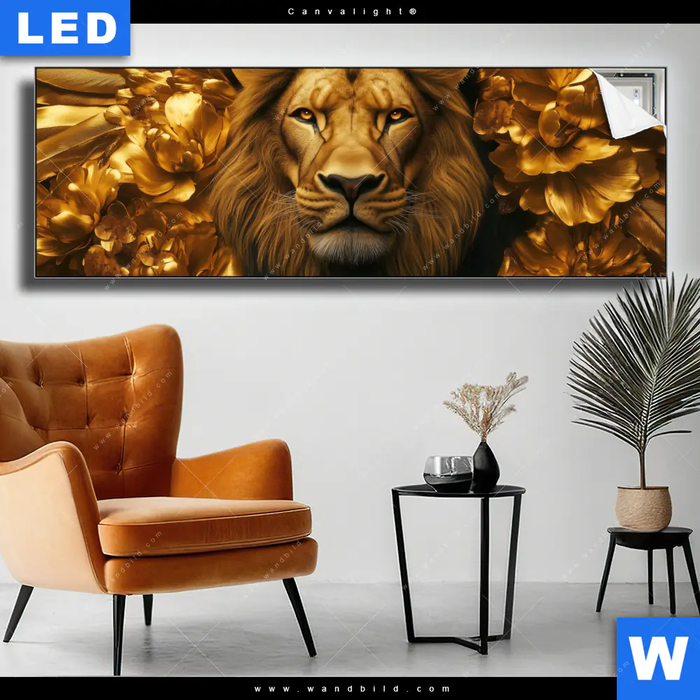 Canvalight® Leuchtbild | Goldener Löwe | Panorama