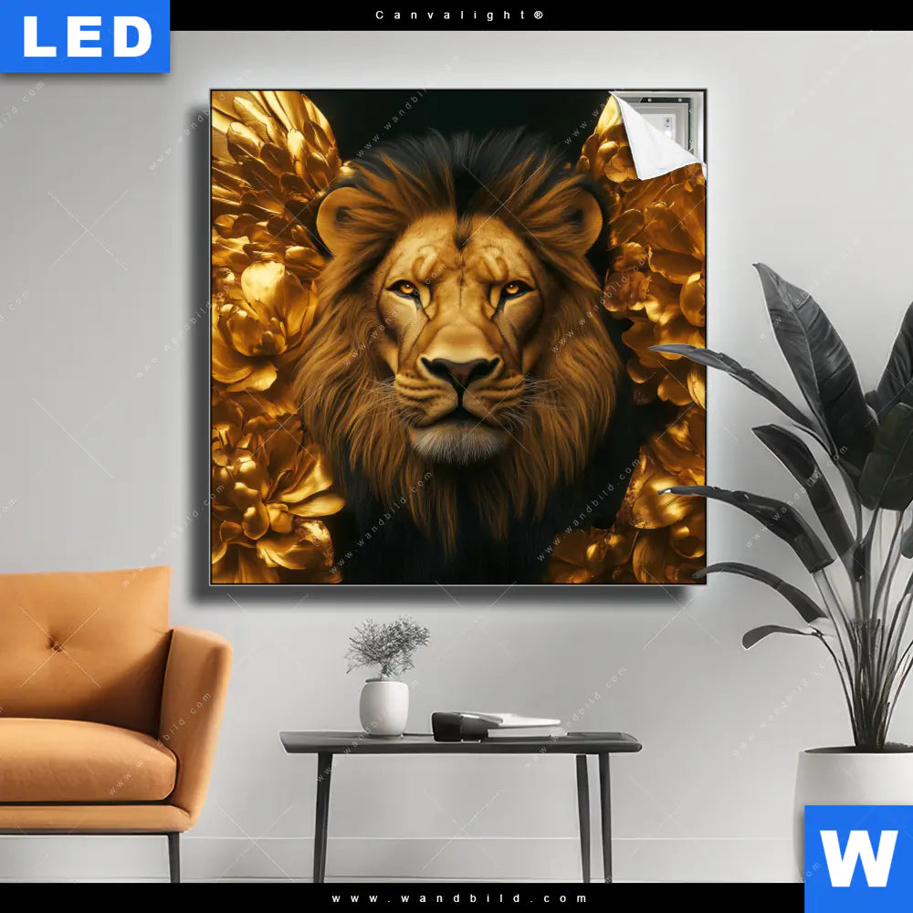 Canvalight® Leuchtbild | Goldener Löwe | Quadrat