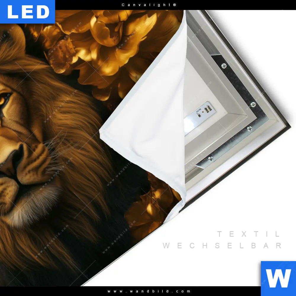 Canvalight® TEX Leuchtbild | Goldener Löwe | Querformat