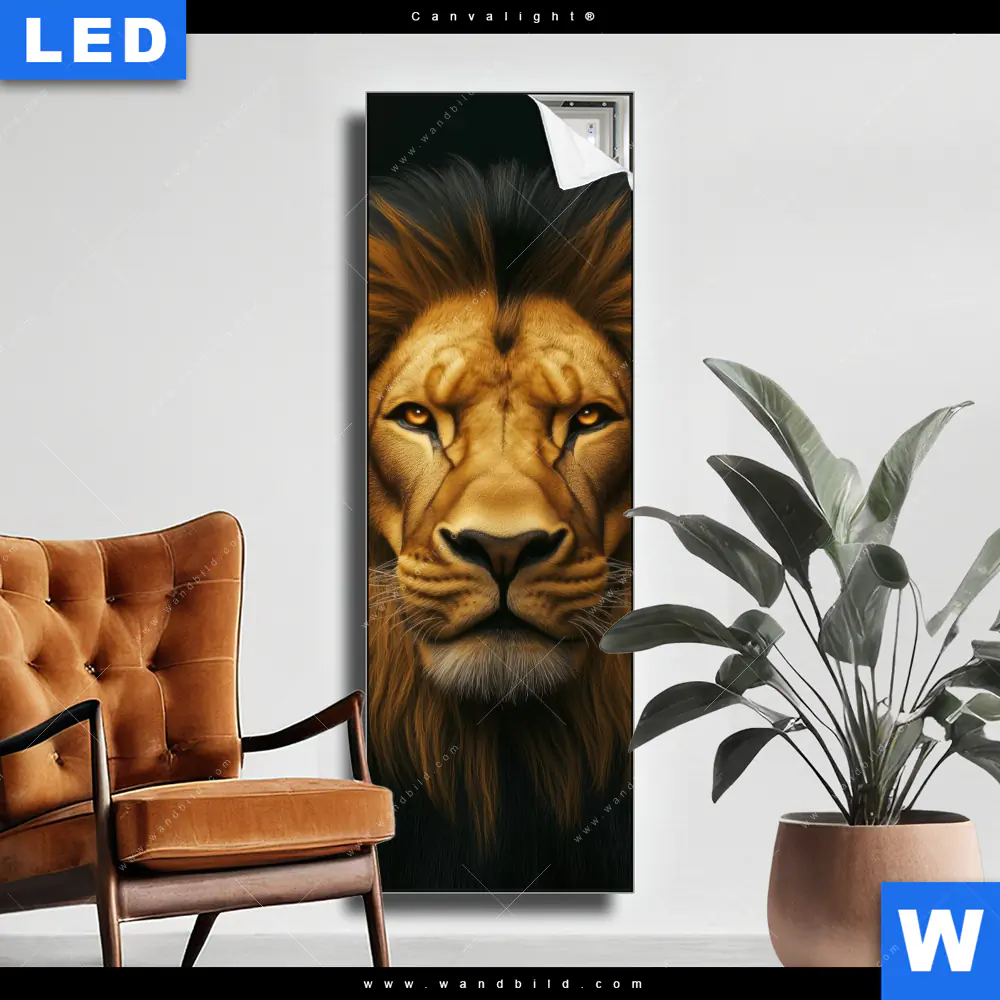 Canvalight® Leuchtbild | Goldener Löwe | Schmal