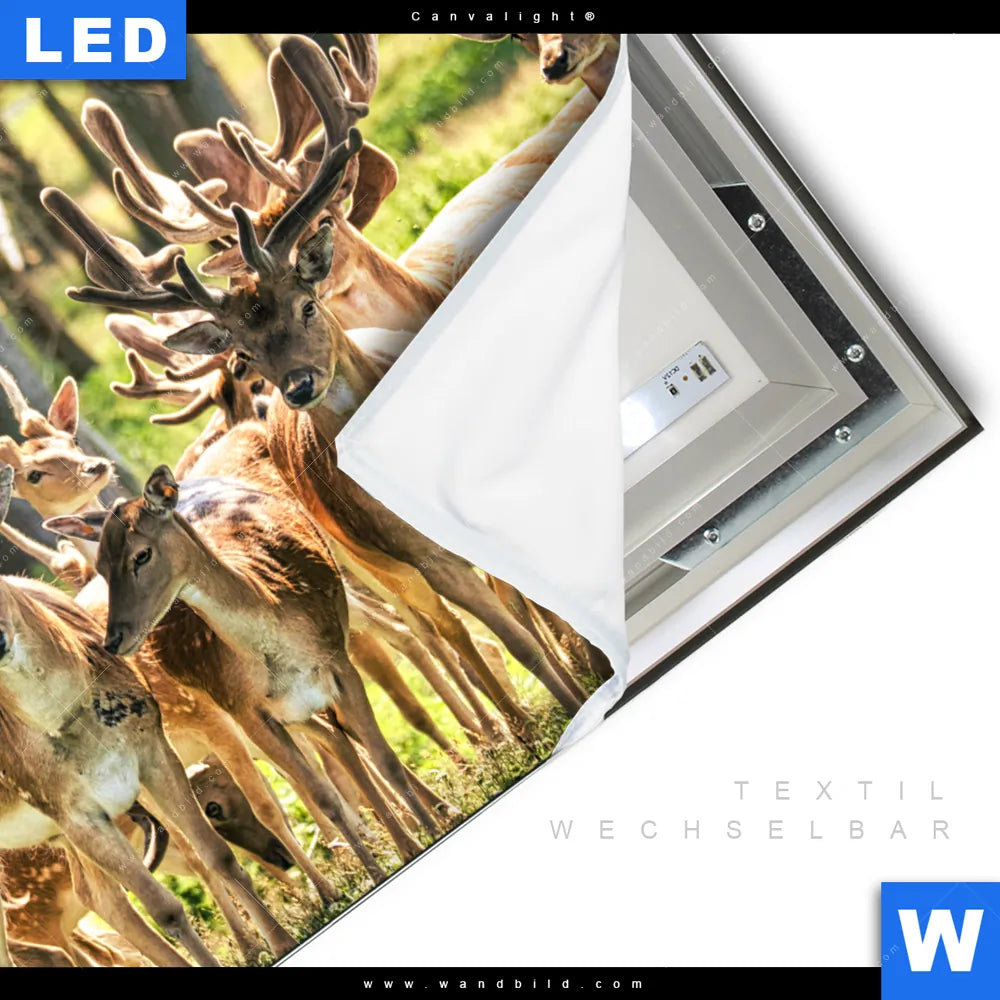 Canvalight® TEX Leuchtbild | Gruppe Rotwild | Quadrat