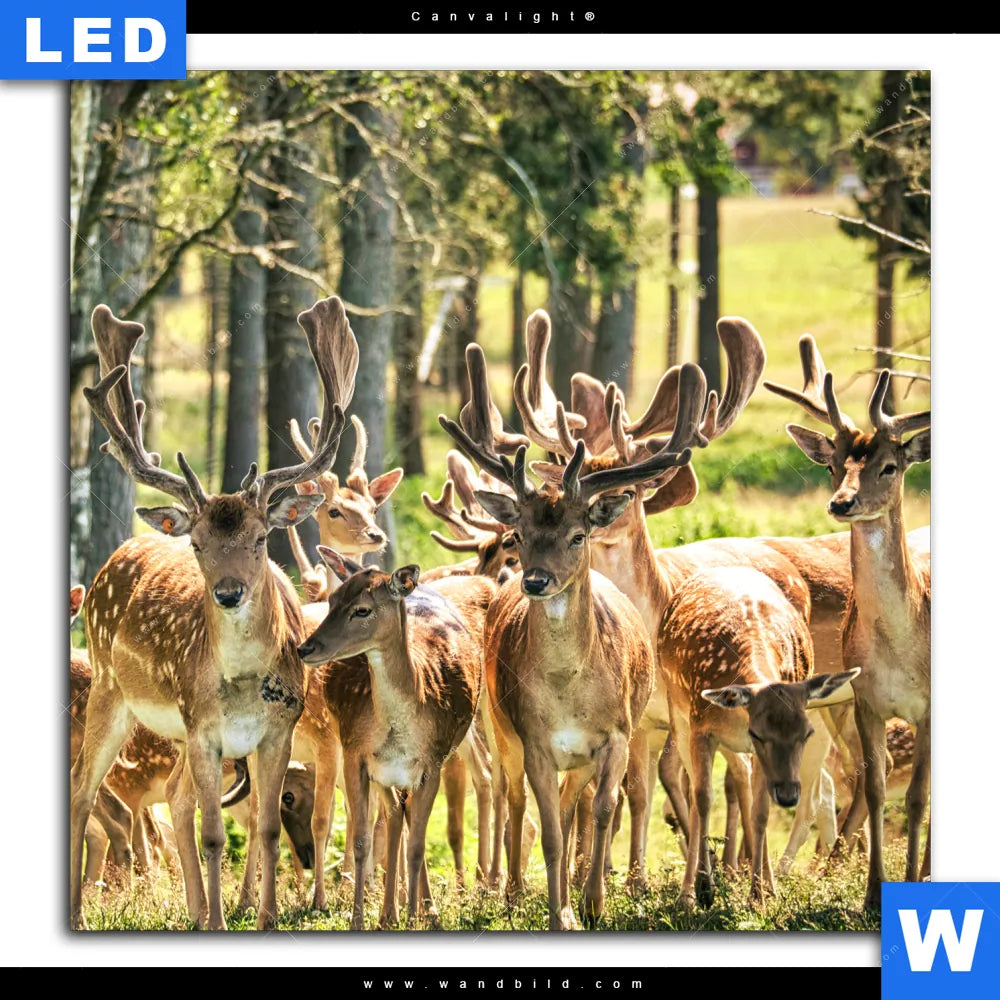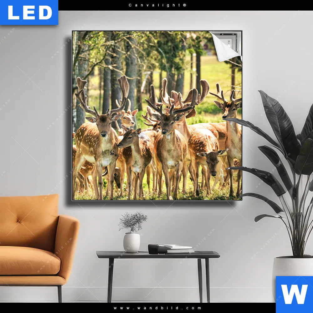 Canvalight® Leuchtbild | Gruppe Rotwild | Quadrat