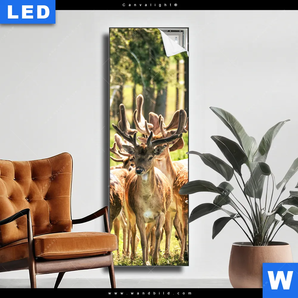 Canvalight® Leuchtbild | Gruppe Rotwild | Schmal