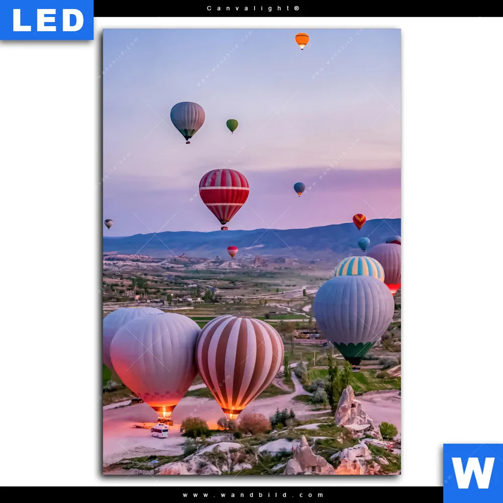 Canvalight® Leuchtbild | Heißluftballons im Sonnenuntergang | Hochformat