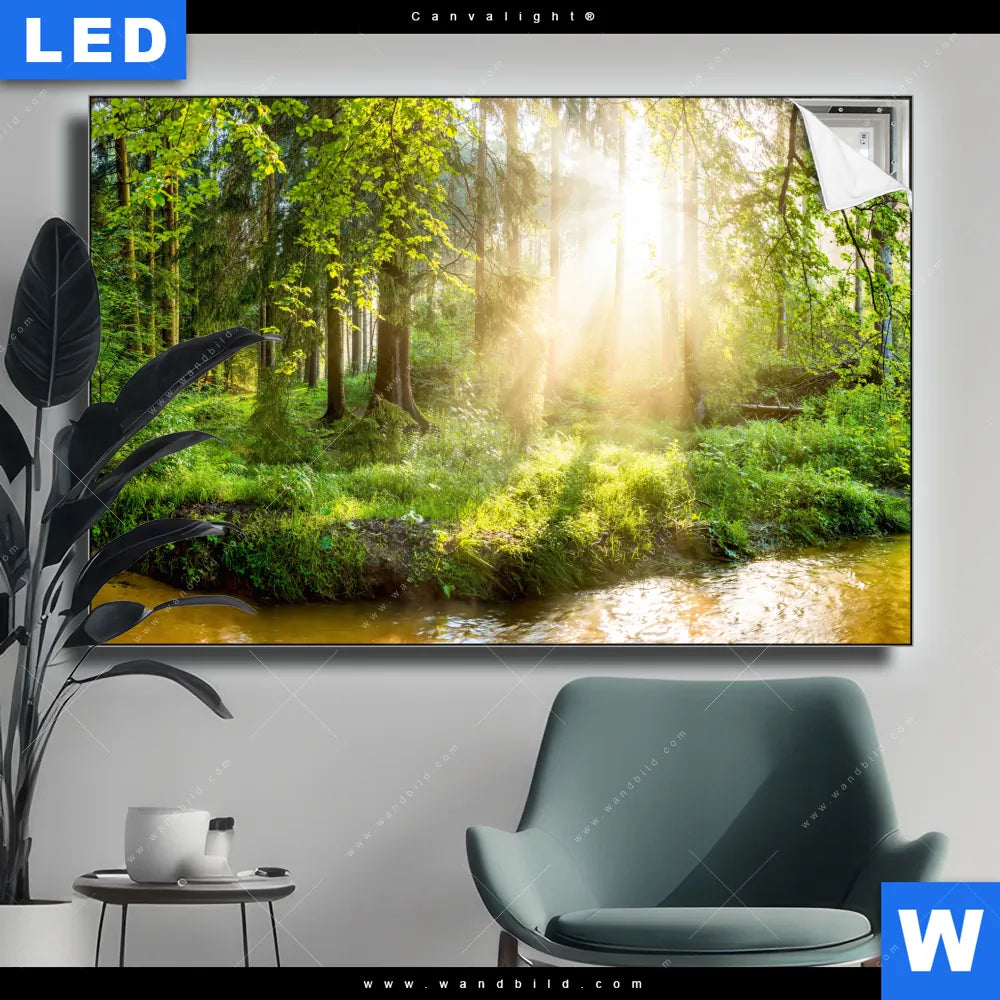 LED-Textilrahmen-Bild mit austauschbarem Landschaften, Wald - Bäume Textil-Druck (Wechselbild)