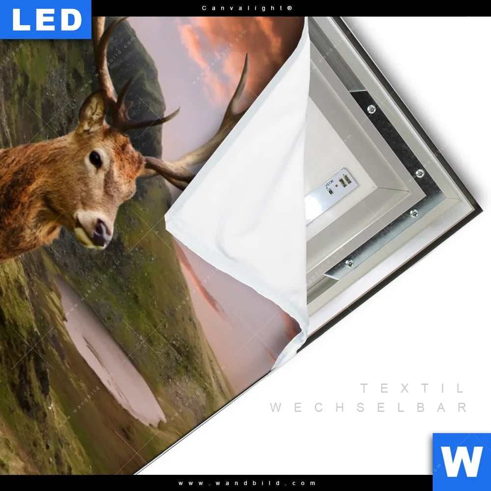 Canvalight® TEX Leuchtbild | Hirsch in Gebirgslandschaft | Hochformat