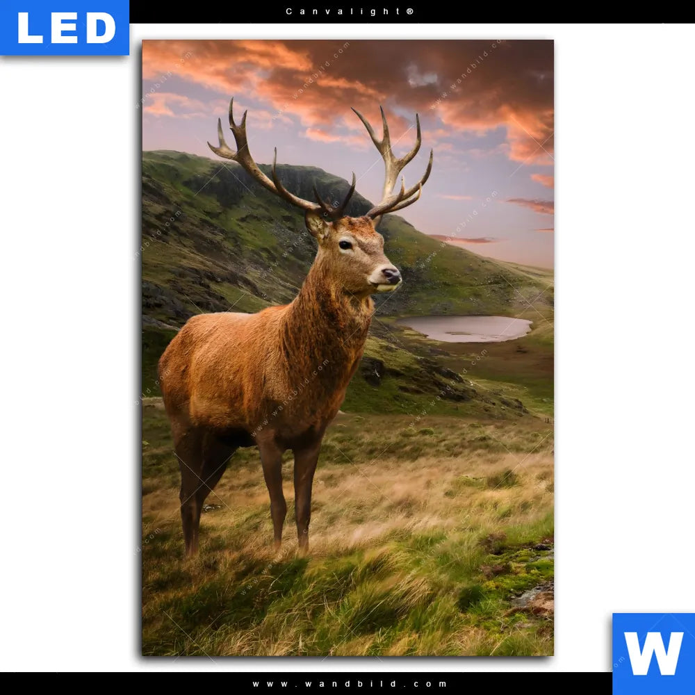 Canvalight® Leuchtbild | Hirsch in Gebirgslandschaft | Hochformat