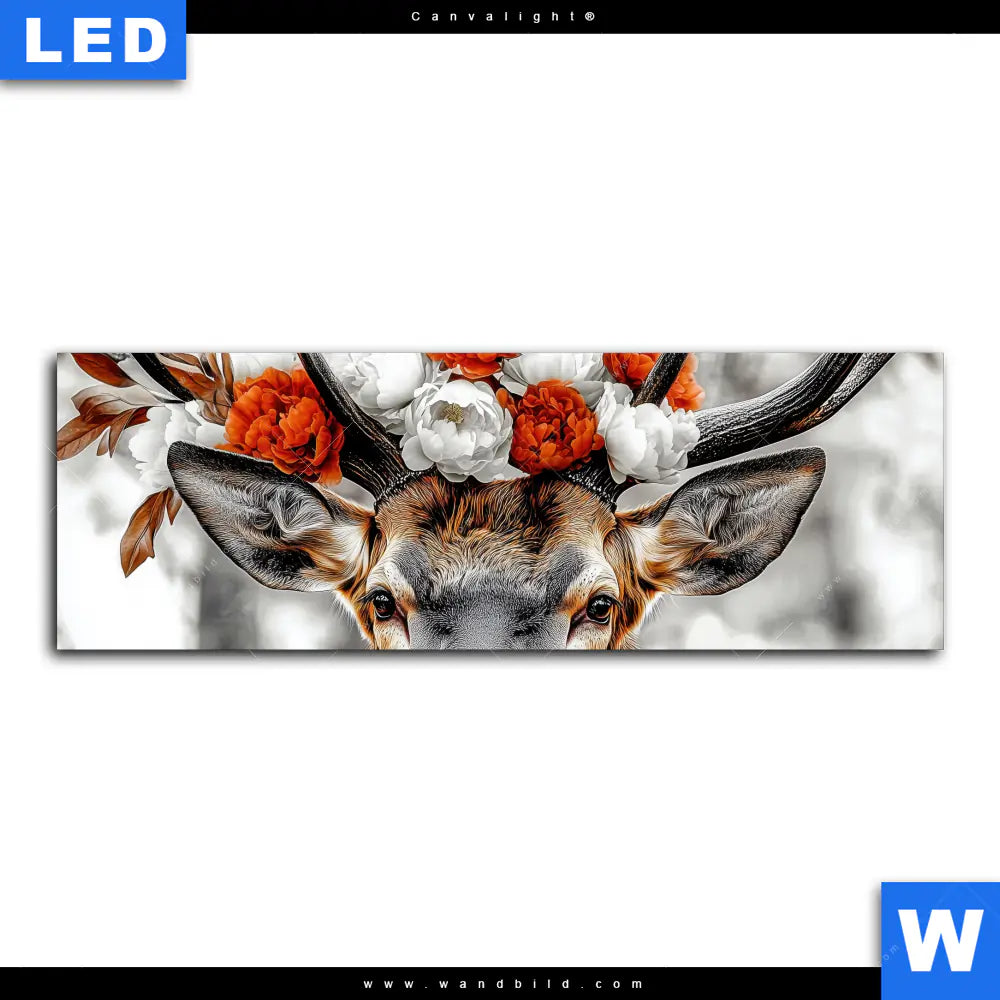 Canvalight® Leuchtbild | Hirsch mit Blumenkrone | Panorama