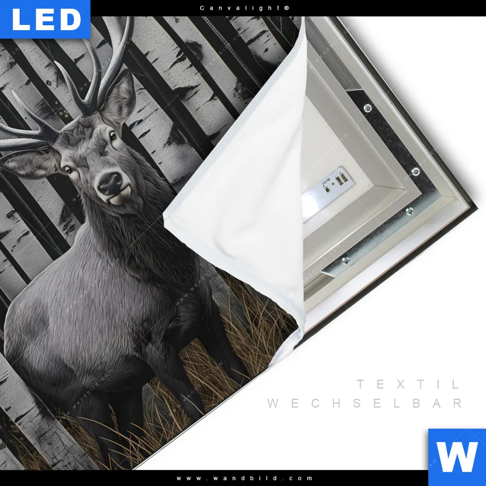 Canvalight® TEX Leuchtbild | Hirschporträt vor Birken | Quadrat