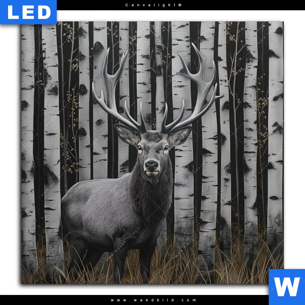Canvalight® Leuchtbild | Hirschporträt vor Birken | Quadrat