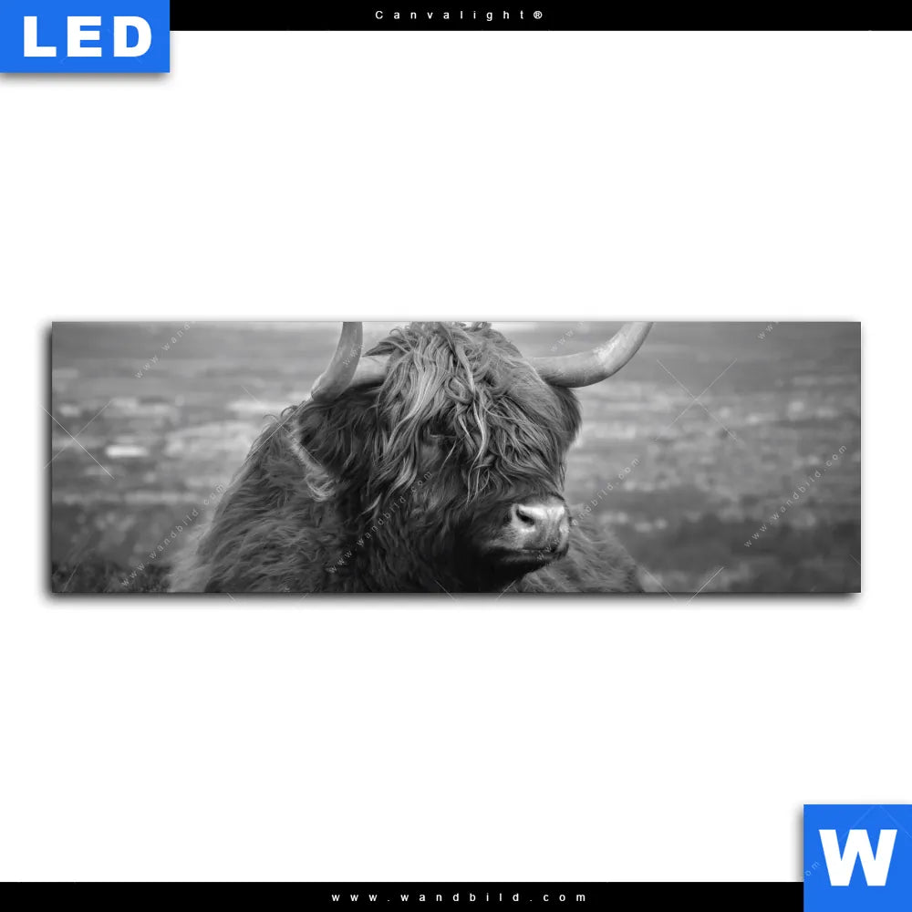 Canvalight® Leuchtbild | Hochland-Rind Schwarz-Weiß No. 2 | Panorama
