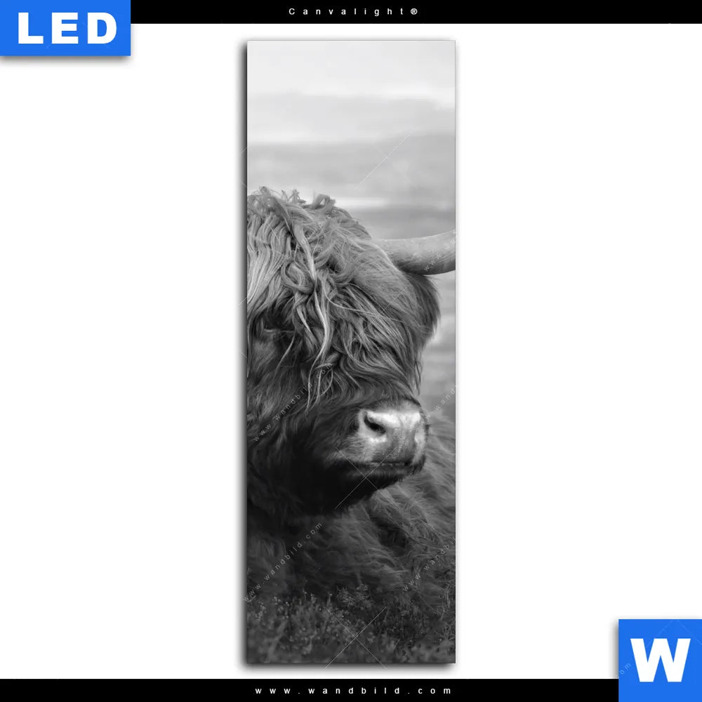 Canvalight® Leuchtbild | Hochland-Rind Schwarz-Weiß No. 2 | Schmal
