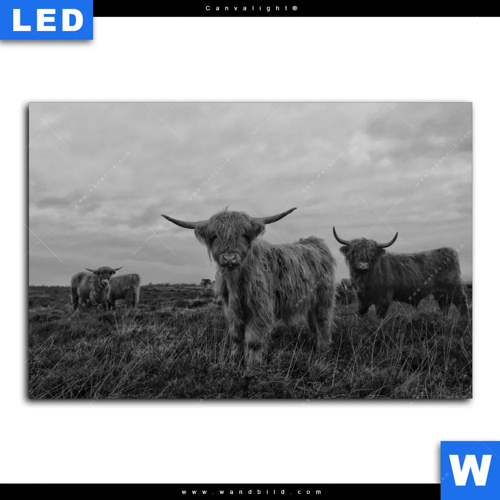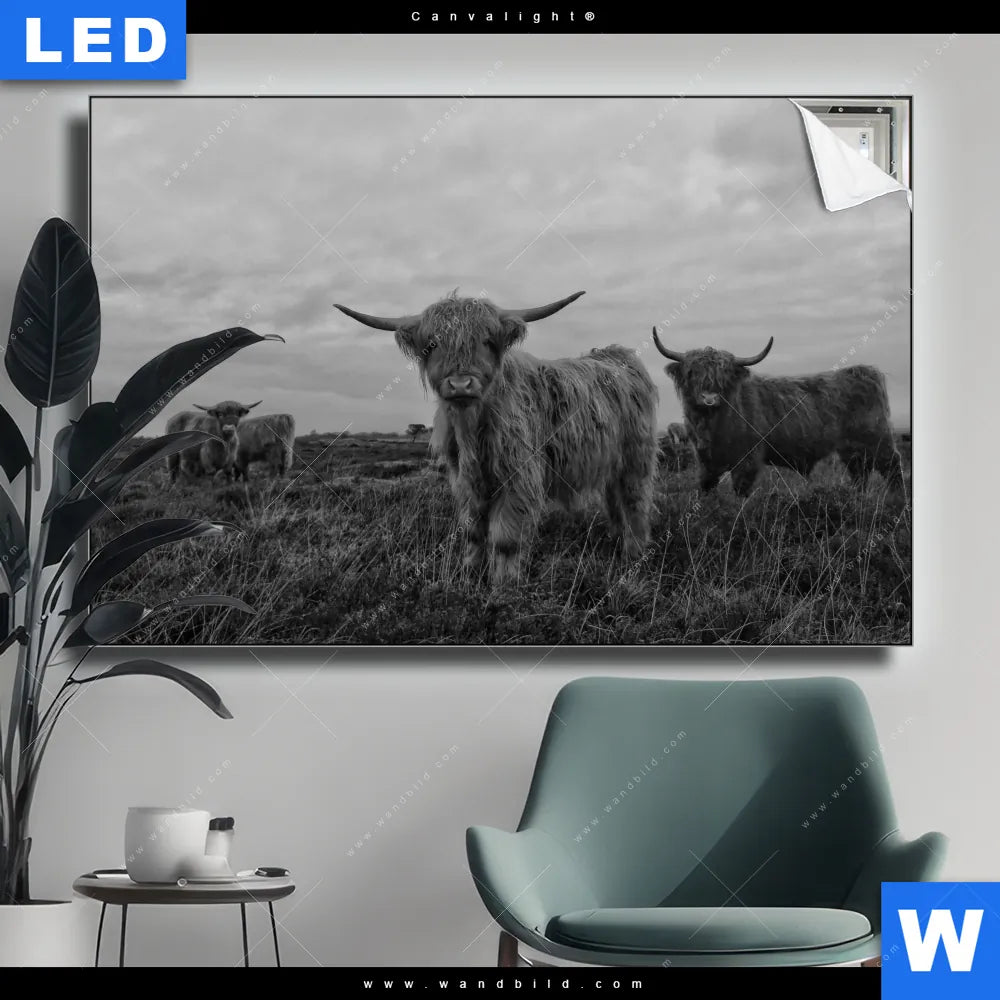 Canvalight® Leuchtbild | Hochland-Rind Schwarz-Weiß | Querformat
