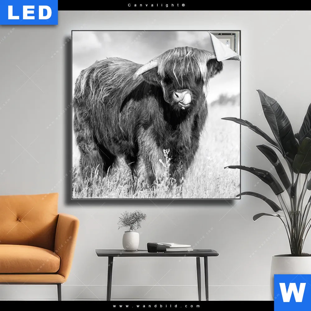 Canvalight® Leuchtbild | Hochlandkuh auf einer Wiese | Quadrat