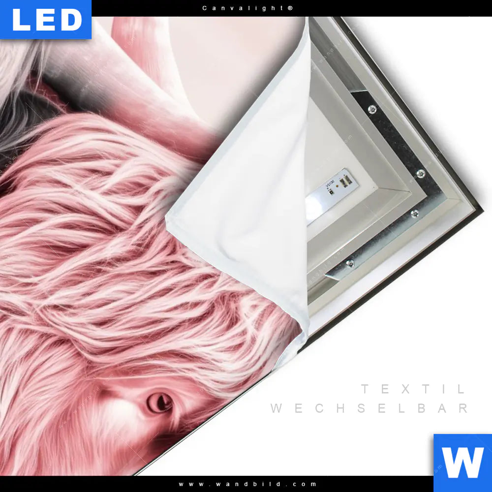 Canvalight® TEX Leuchtbild | Hochlandrinder - Harmonie in Pastell | Hochformat