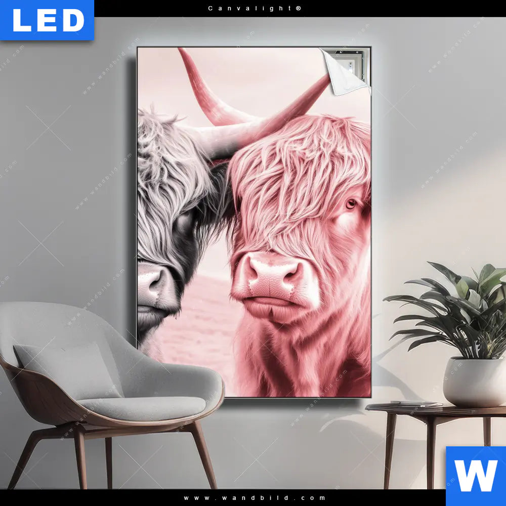 Canvalight® Leuchtbild | Hochlandrinder - Harmonie in Pastell | Hochformat