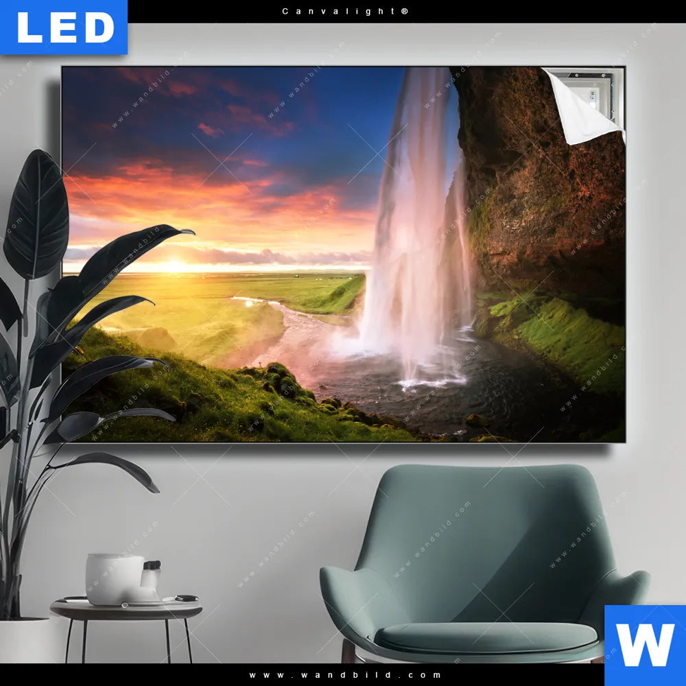 Canvalight® Leuchtbild | Isländischer Wasserfall | Querformat