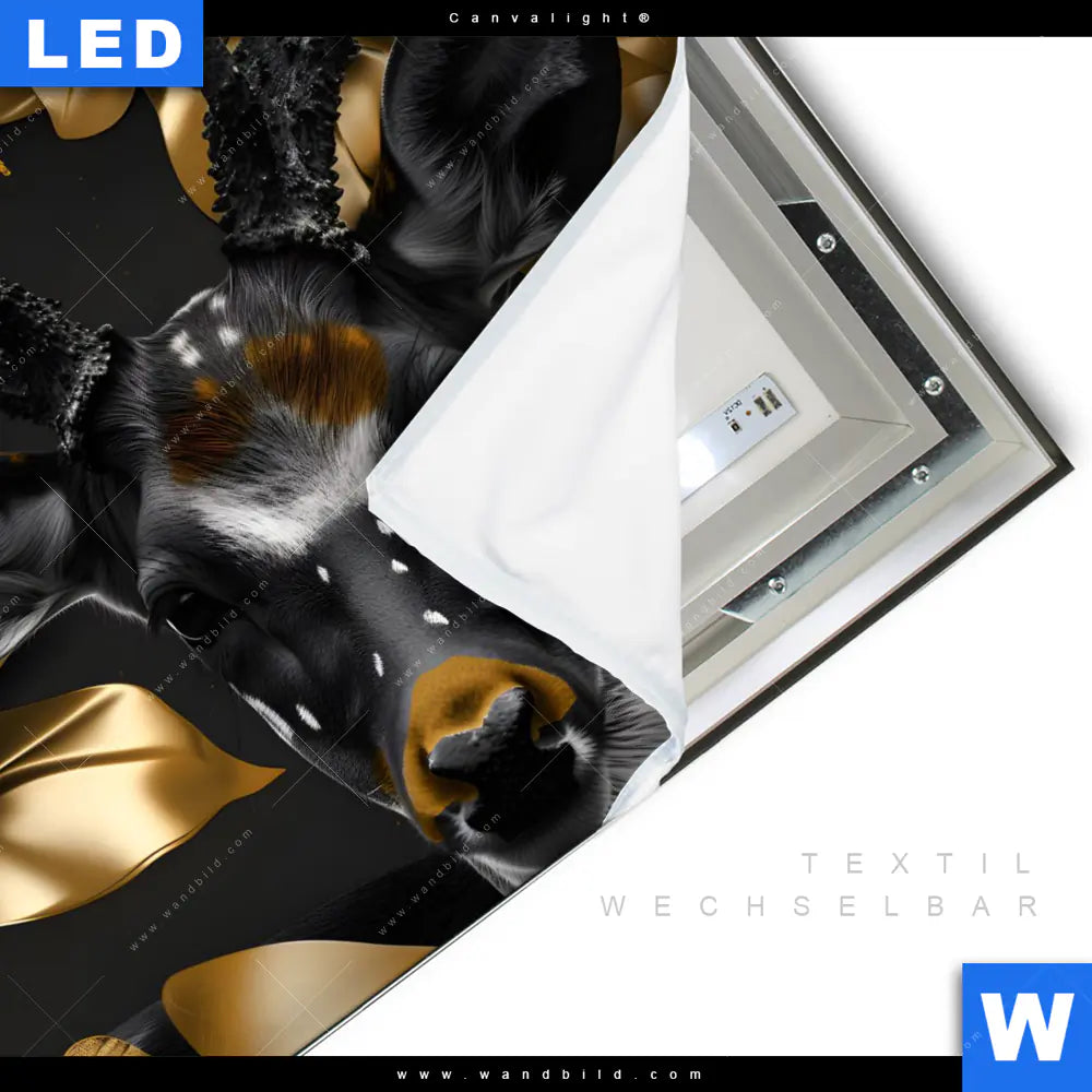 Canvalight® TEX Leuchtbild | Junger Hirsch und Goldblumen | Quadrat