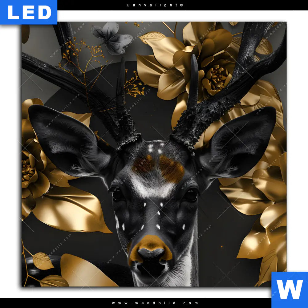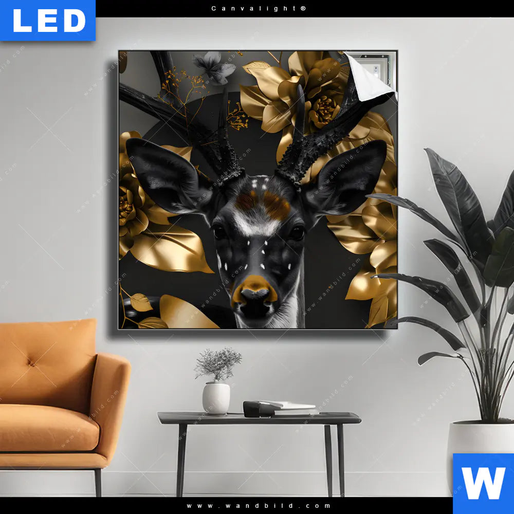 Canvalight® Leuchtbild | Junger Hirsch und Goldblumen | Quadrat