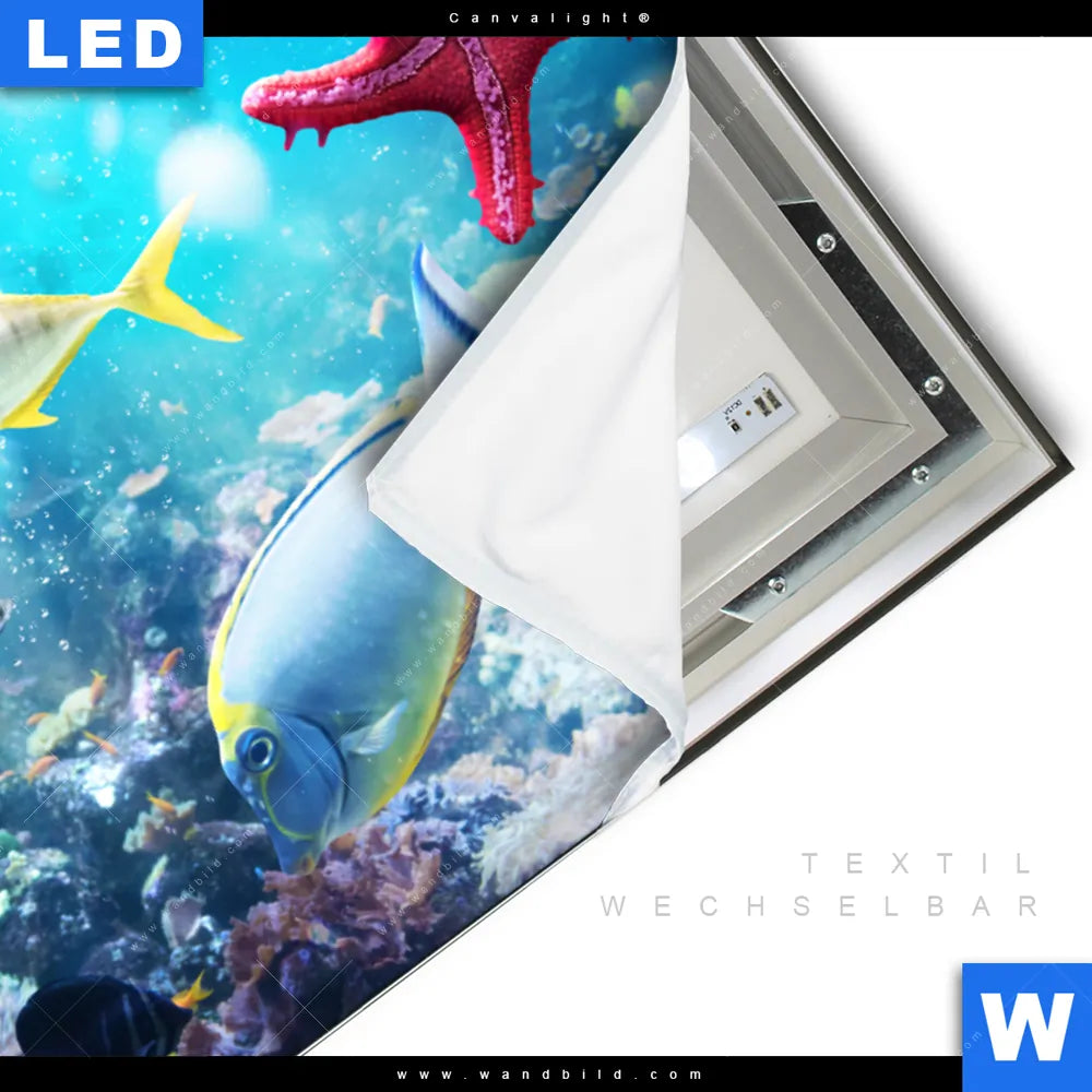 LED-Textilrahmen-Bild mit austauschbarem Strand - Meer, Tierwelt Textil-Druck (Wechselbild)