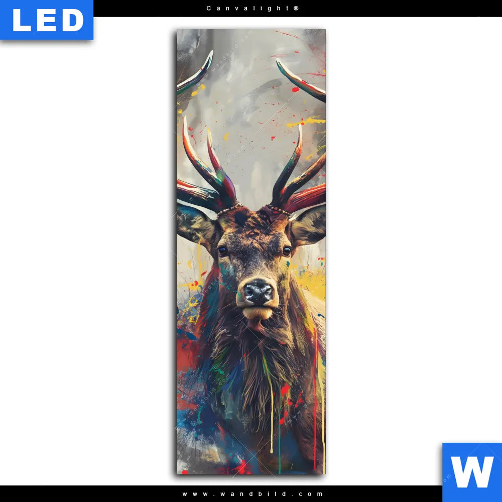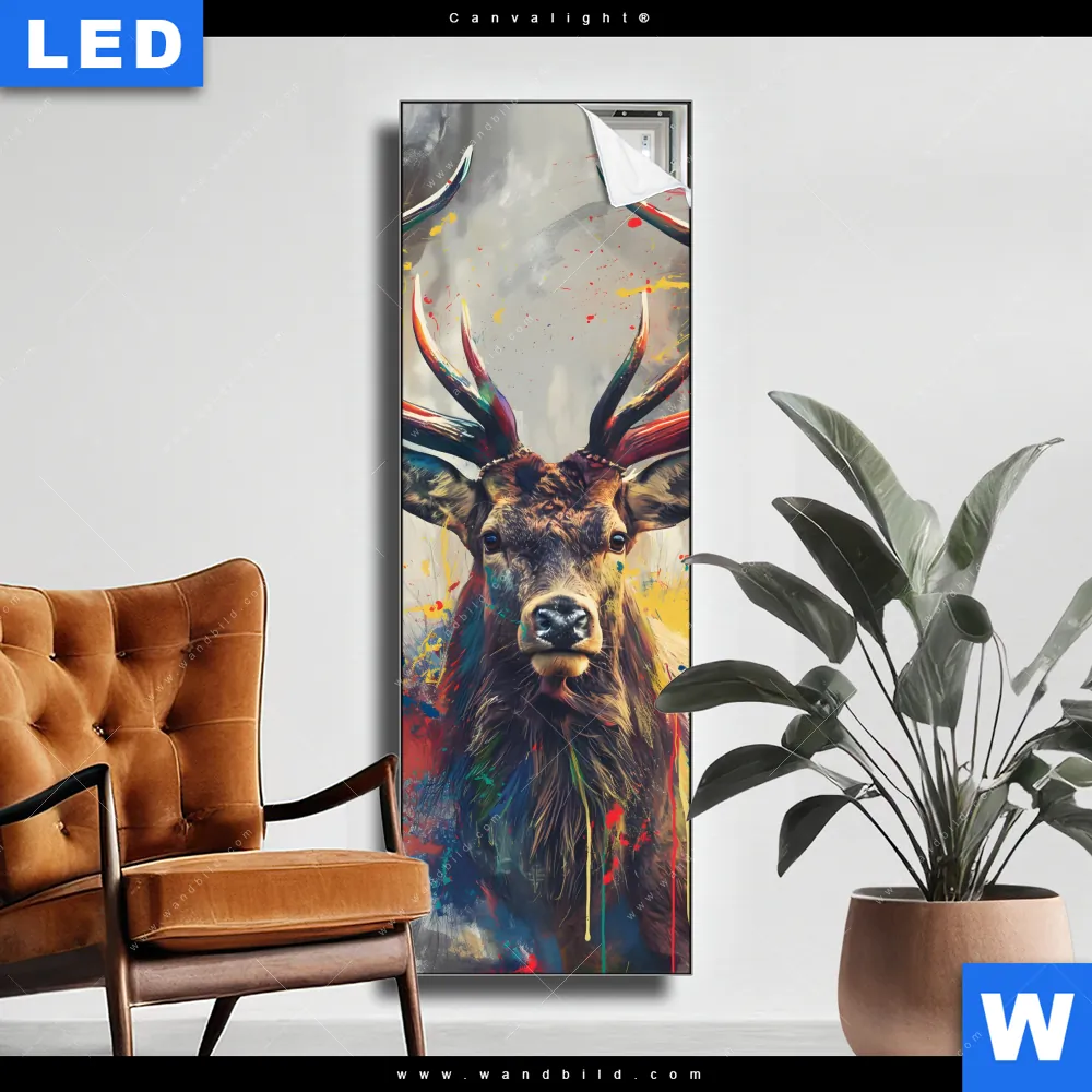 Canvalight® Leuchtbild | Kreativer Hirsch mit Farbspritzern | Schmal