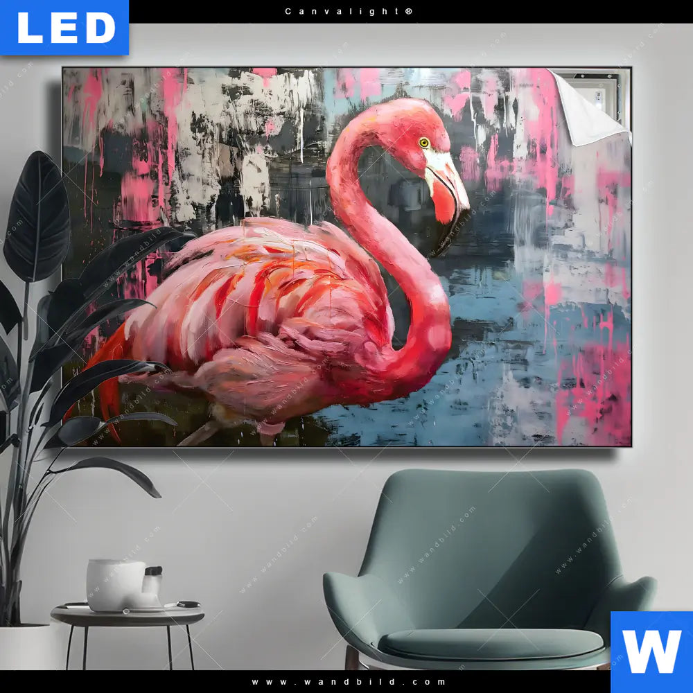 Canvalight® TEX Leuchtbild | Kunstvoller Flamingo | Querformat