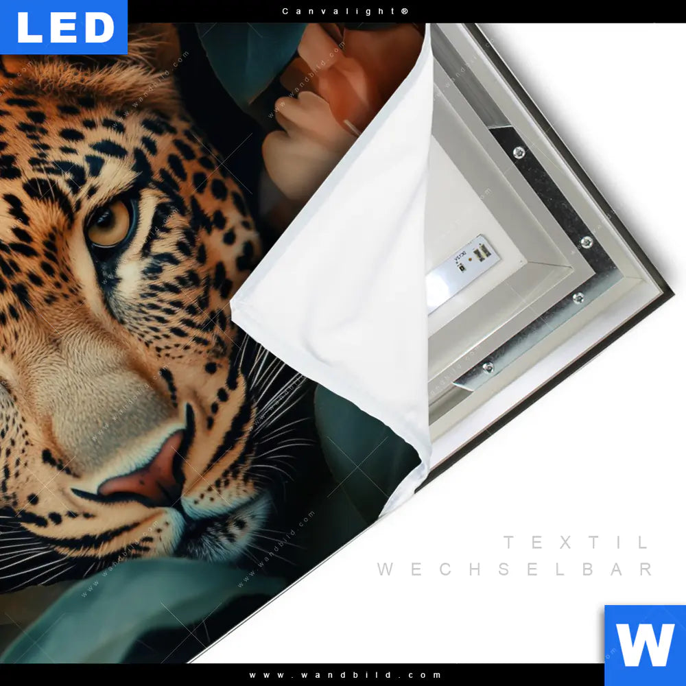 Canvalight® TEX Leuchtbild | Leopard im Blütenmeer | Quadrat