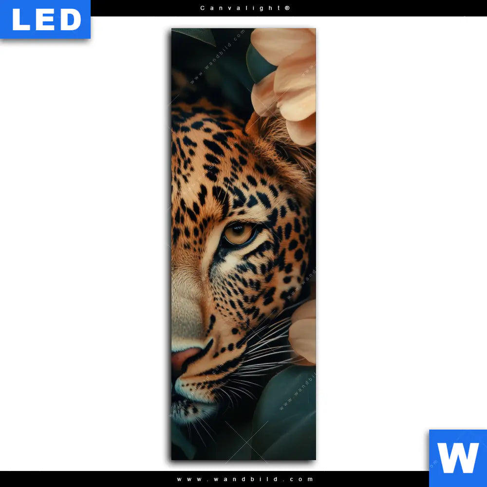 Canvalight® Leuchtbild | Leopard im Blütenmeer | Schmal