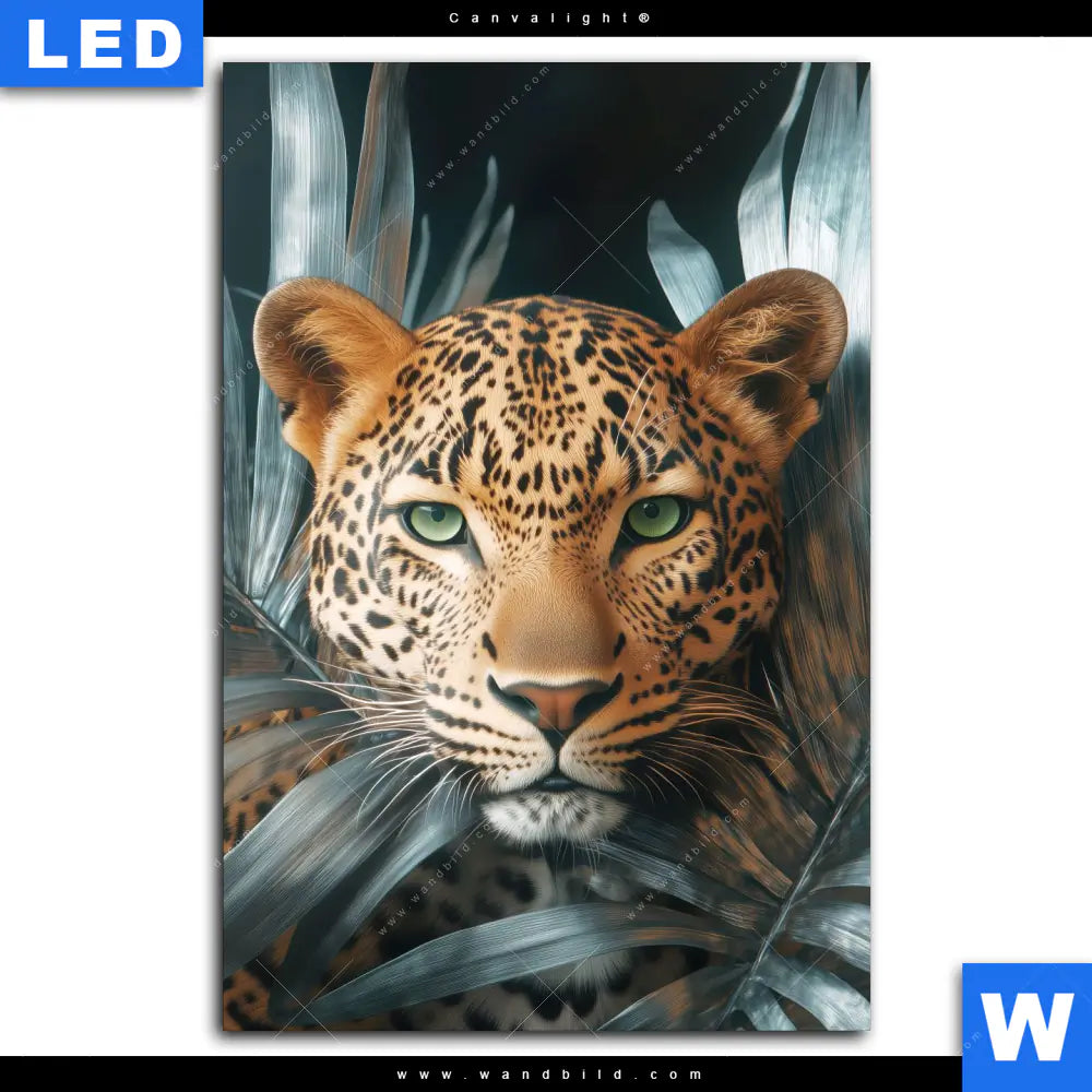 Canvalight® Leuchtbild | Leopard zwischen Blättern | Hochformat