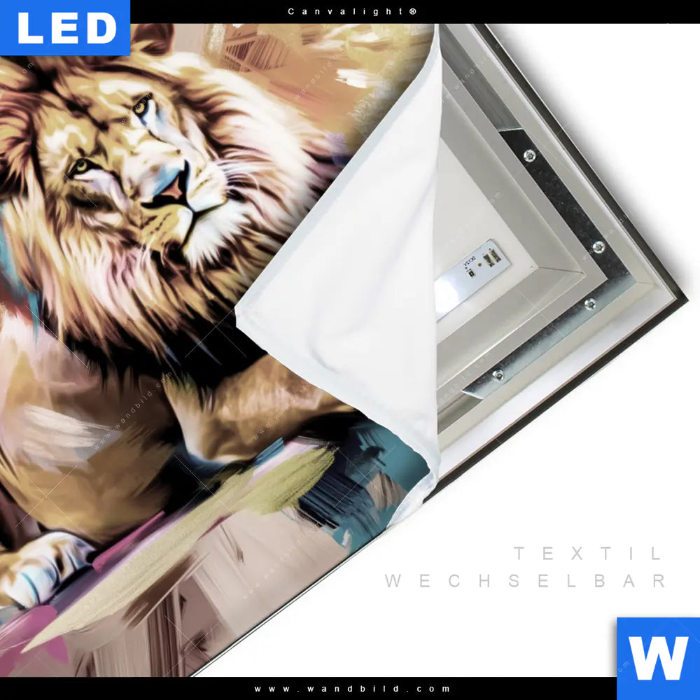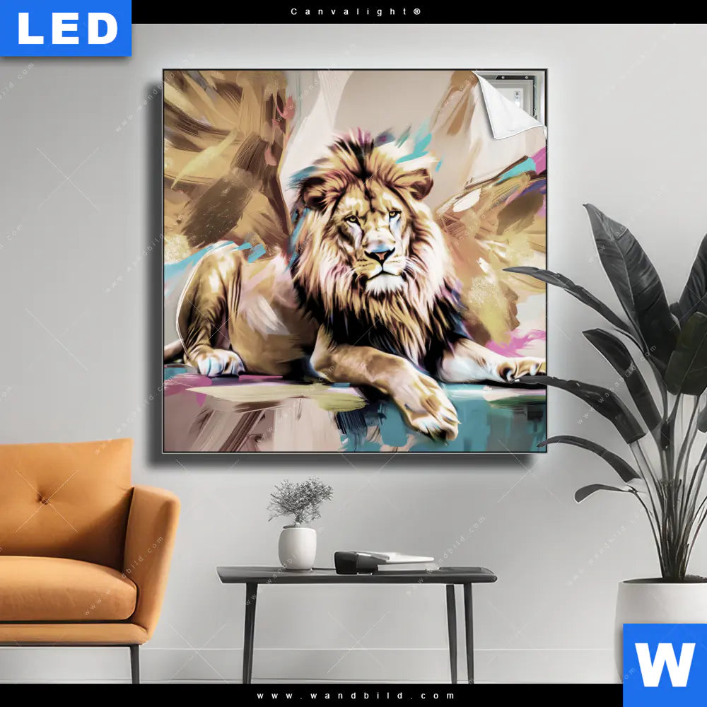 Canvalight® TEX Leuchtbild | Löwe - König der Tiere | Quadrat