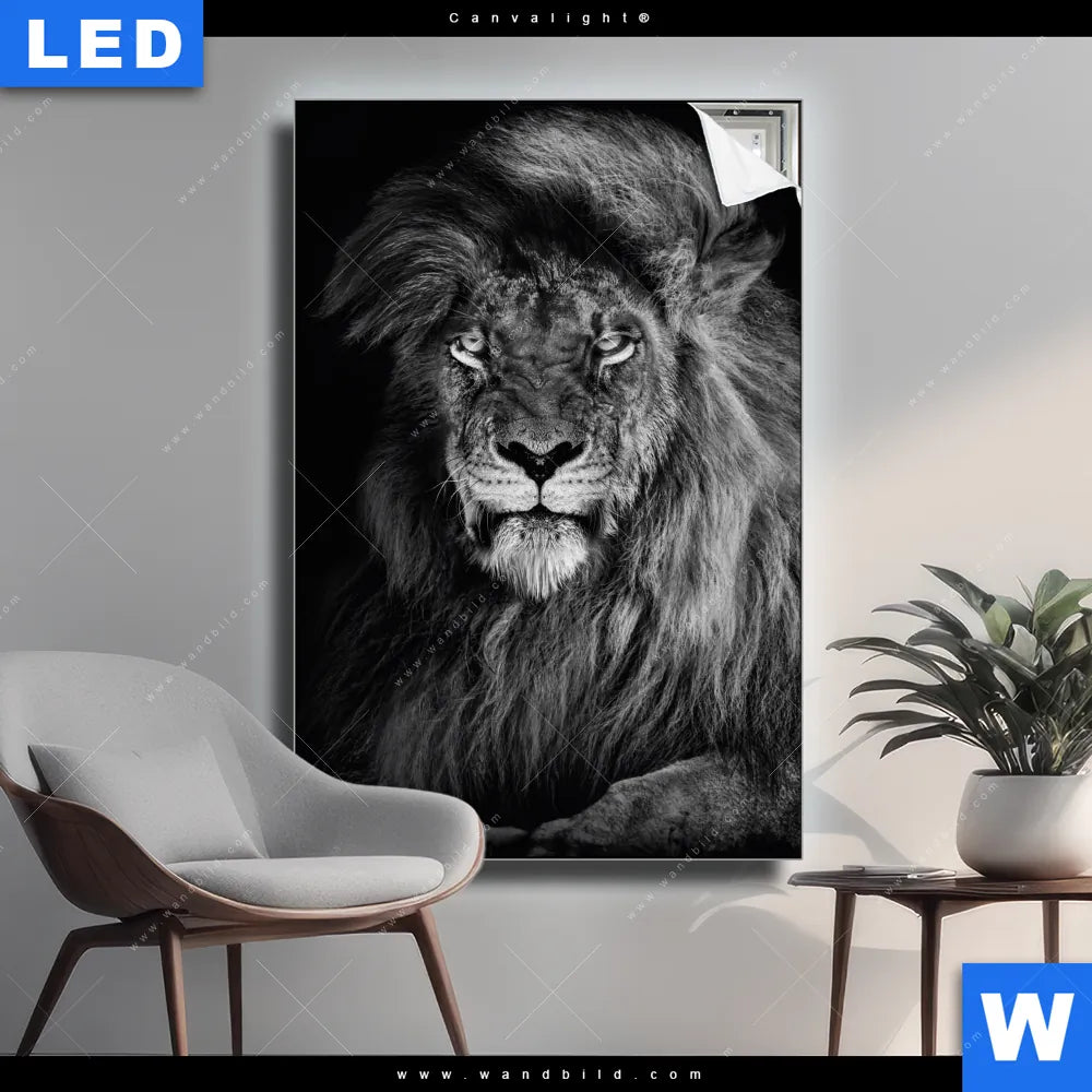 Canvalight® Leuchtbild | Löwe Schwarzweiß | Hochformat