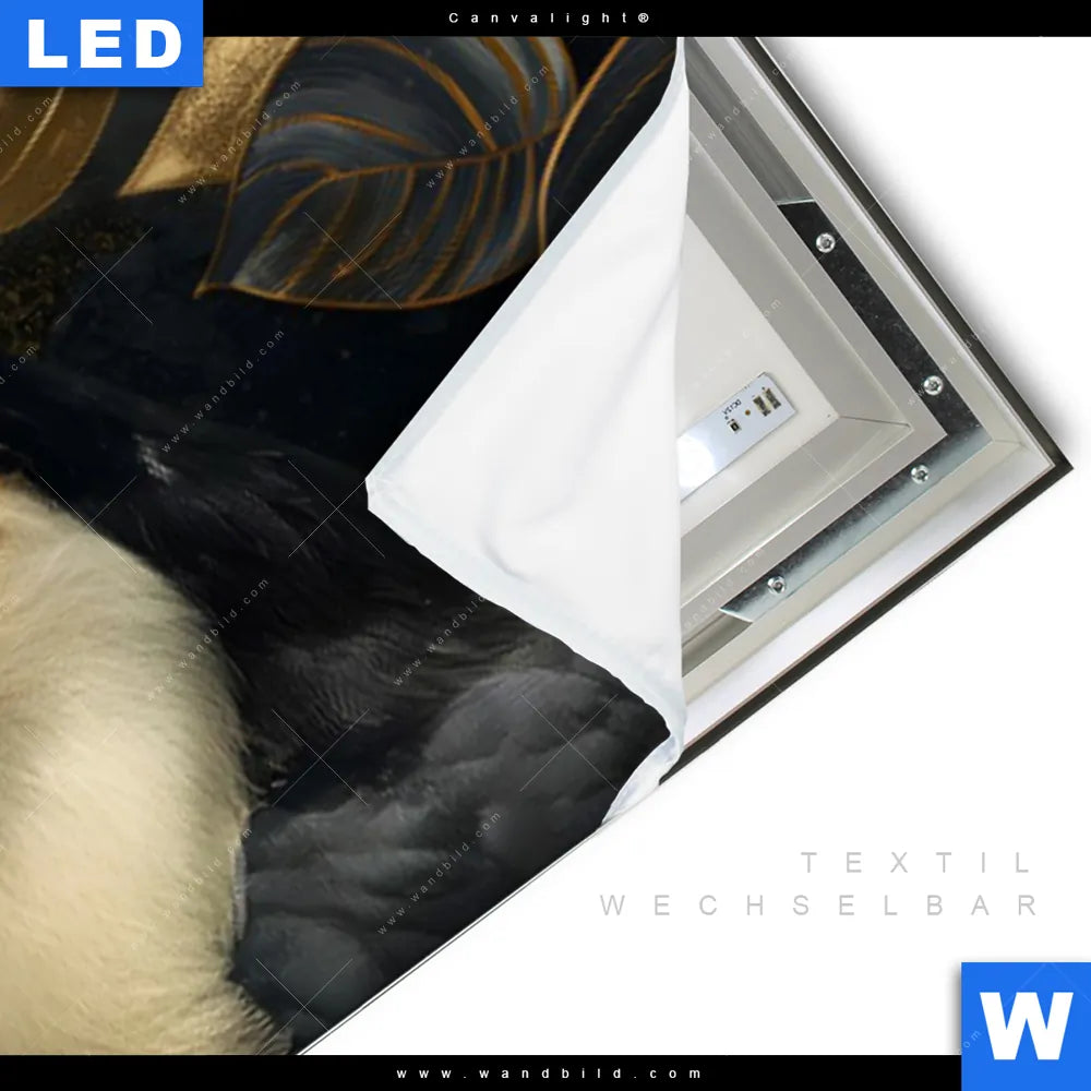 LED-Textilrahmen-Bild mit austauschbarem Tierwelt, Blumen - Botanik Textil-Druck (Wechselbild)