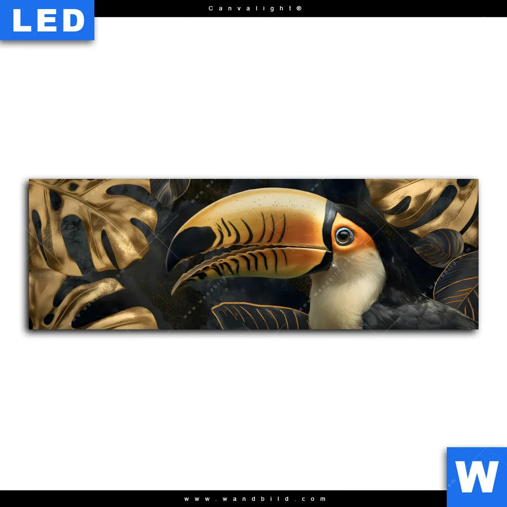 Canvalight® Leuchtbild | Monstera und Tukan Gold | Panorama