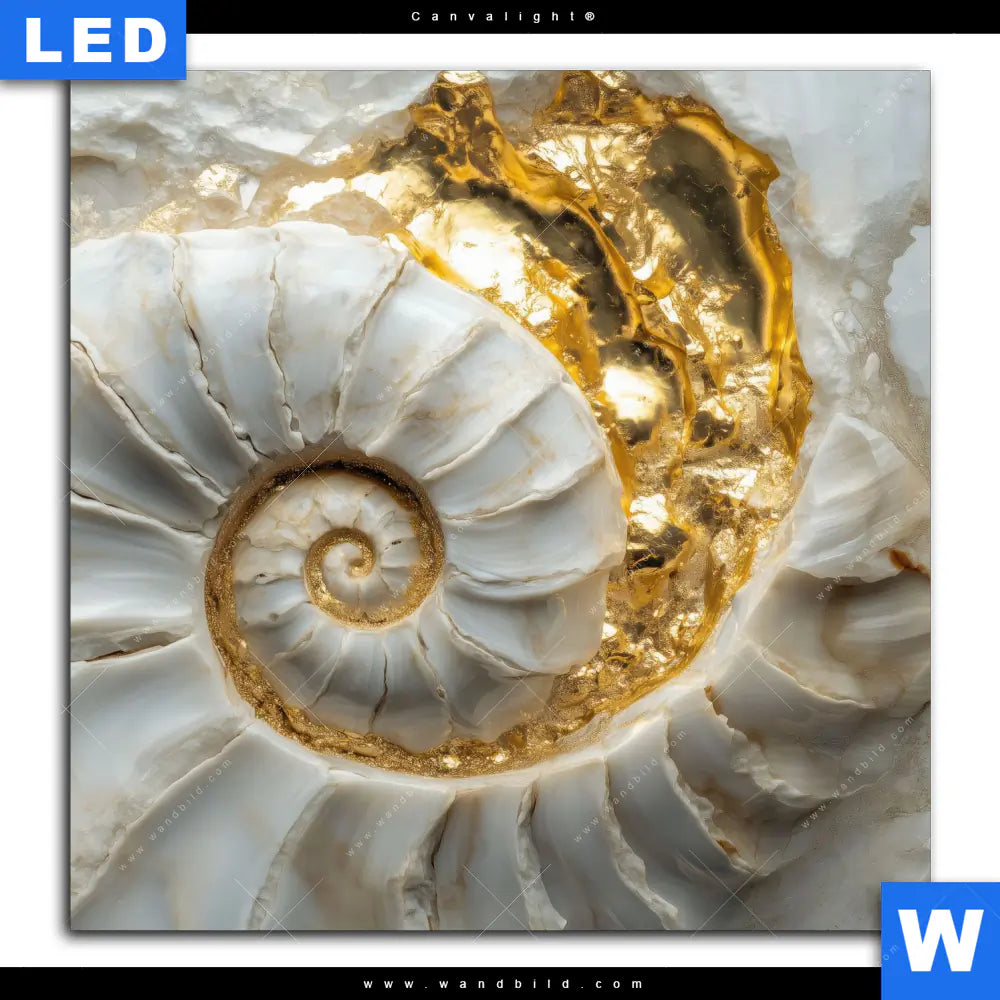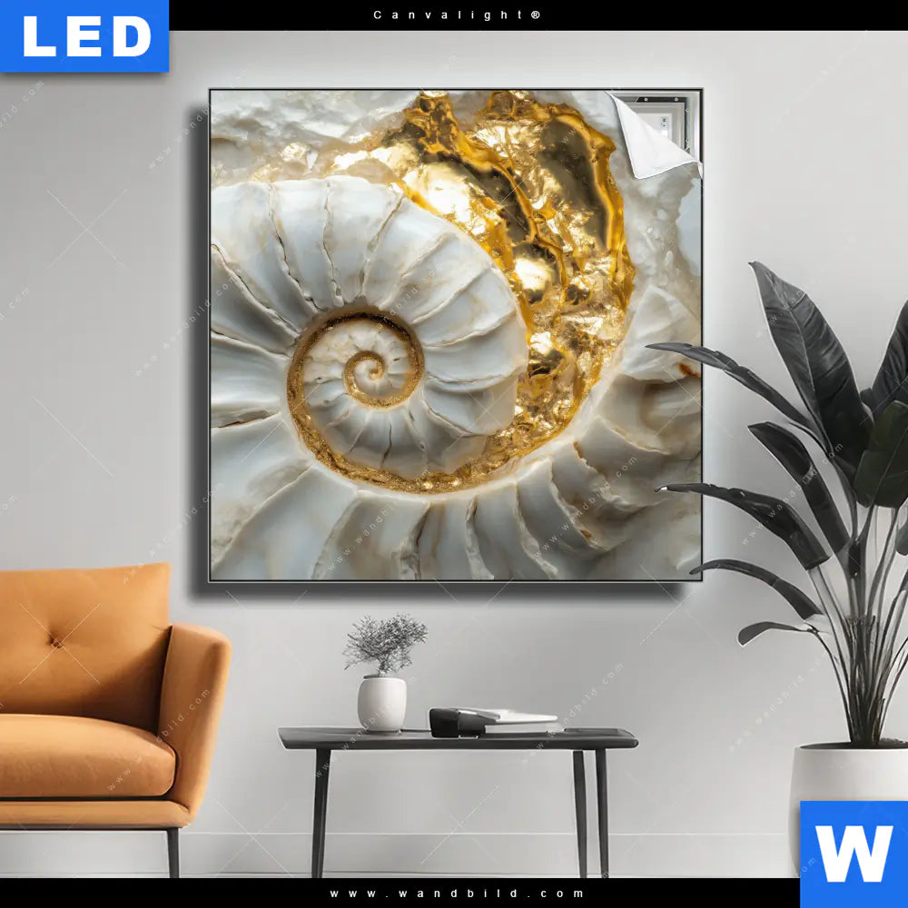 Canvalight® Leuchtbild | Muschelspirale mit Gold | Quadrat