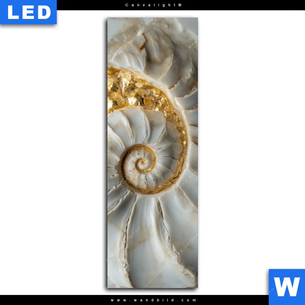 Canvalight® Leuchtbild | Muschelspirale mit Gold | Schmal