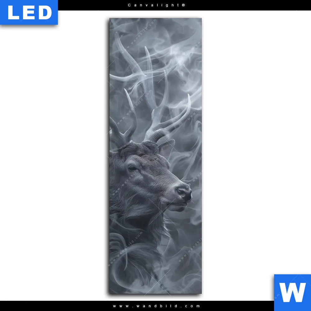 Canvalight® Leuchtbild | Mystischer Hirsch im Nebel | Schmal
