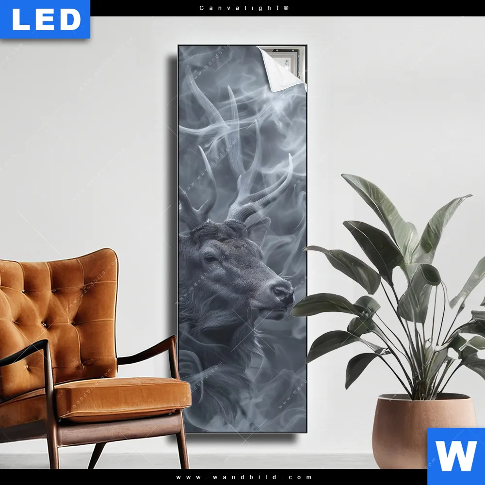 Canvalight® TEX Leuchtbild | Mystischer Hirsch im Nebel | Schmal