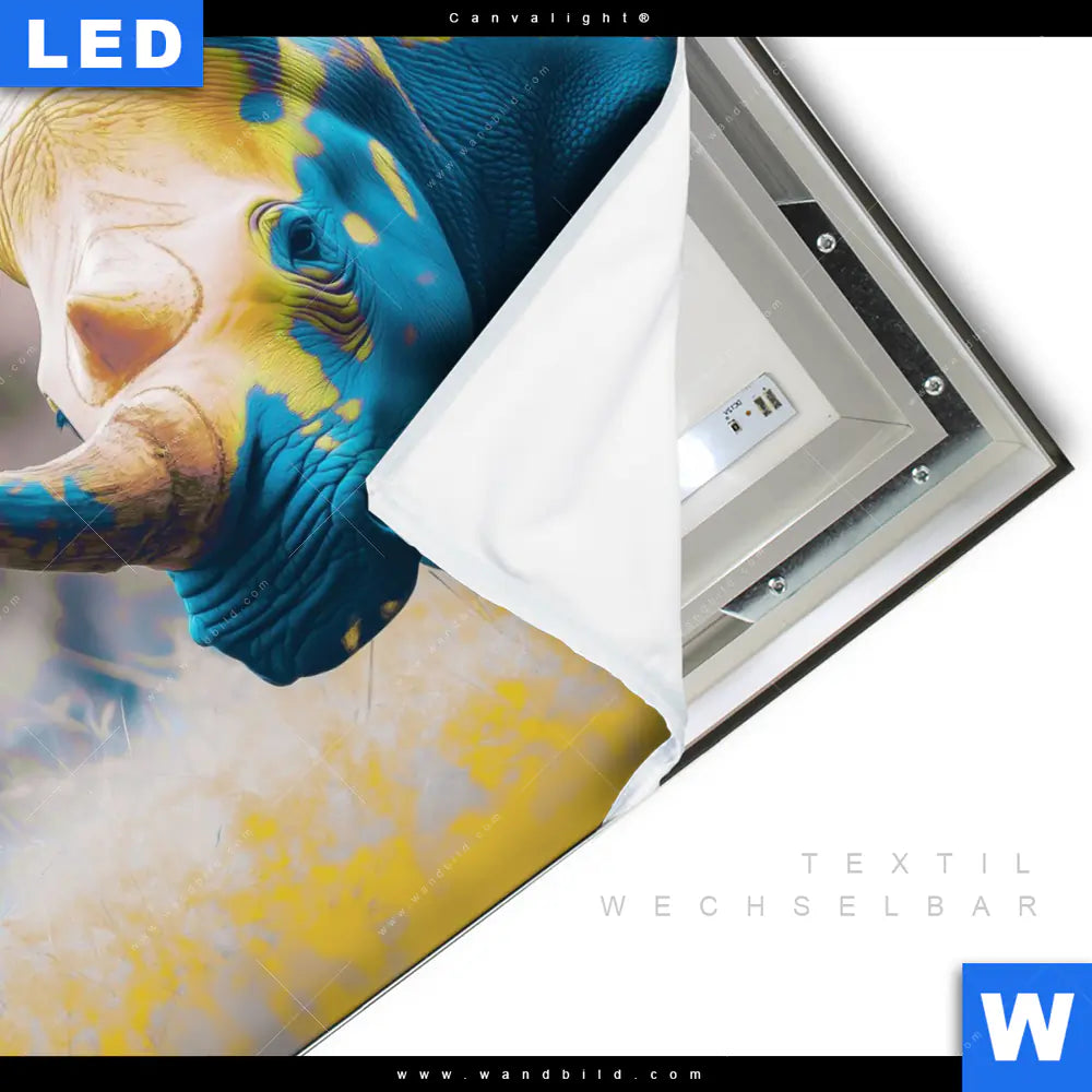 Canvalight® TEX Leuchtbild | Nashorn - Farben der Wildness | Quadrat