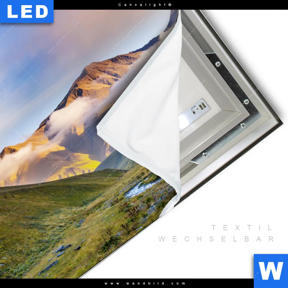 LED-Textilrahmen-Bild mit austauschbarem Landschaften Textil-Druck (Wechselbild)