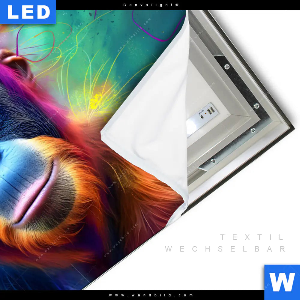 Canvalight® TEX Leuchtbild | Orang-Utan in Regenbogenfarben | Querformat