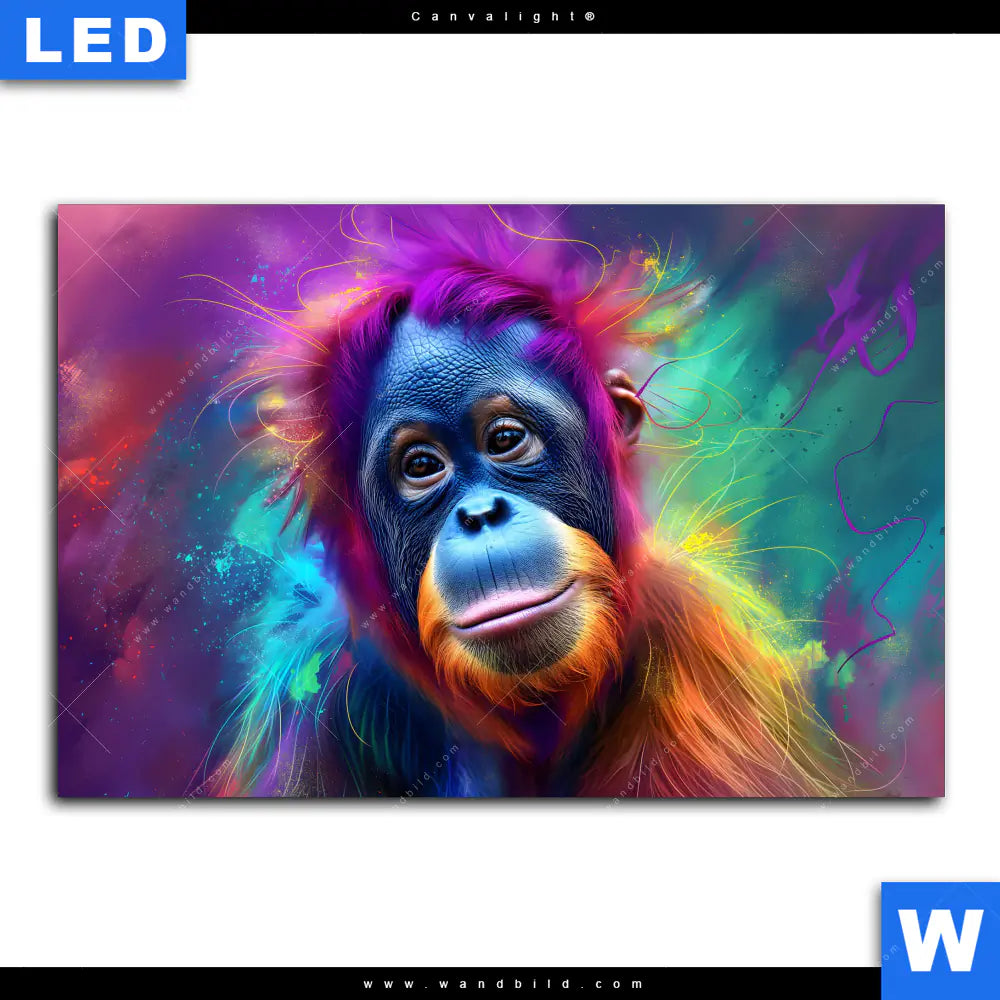 Canvalight® Leuchtbild | Orang-Utan in Regenbogenfarben | Querformat