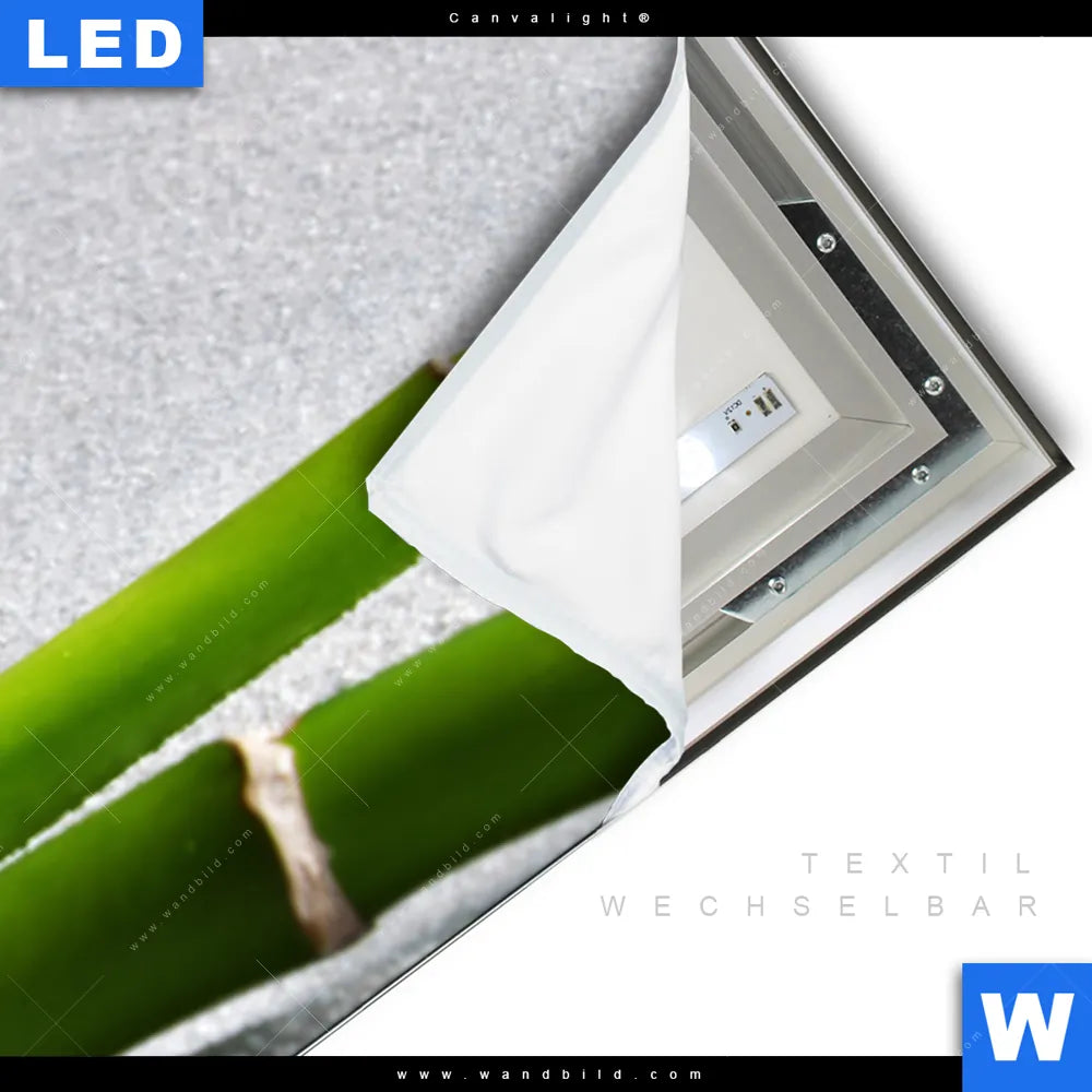 LED-Textilrahmen-Bild mit austauschbarem Buddha - Feng Shui, Blumen - Botanik Textil-Druck (Wechselbild)