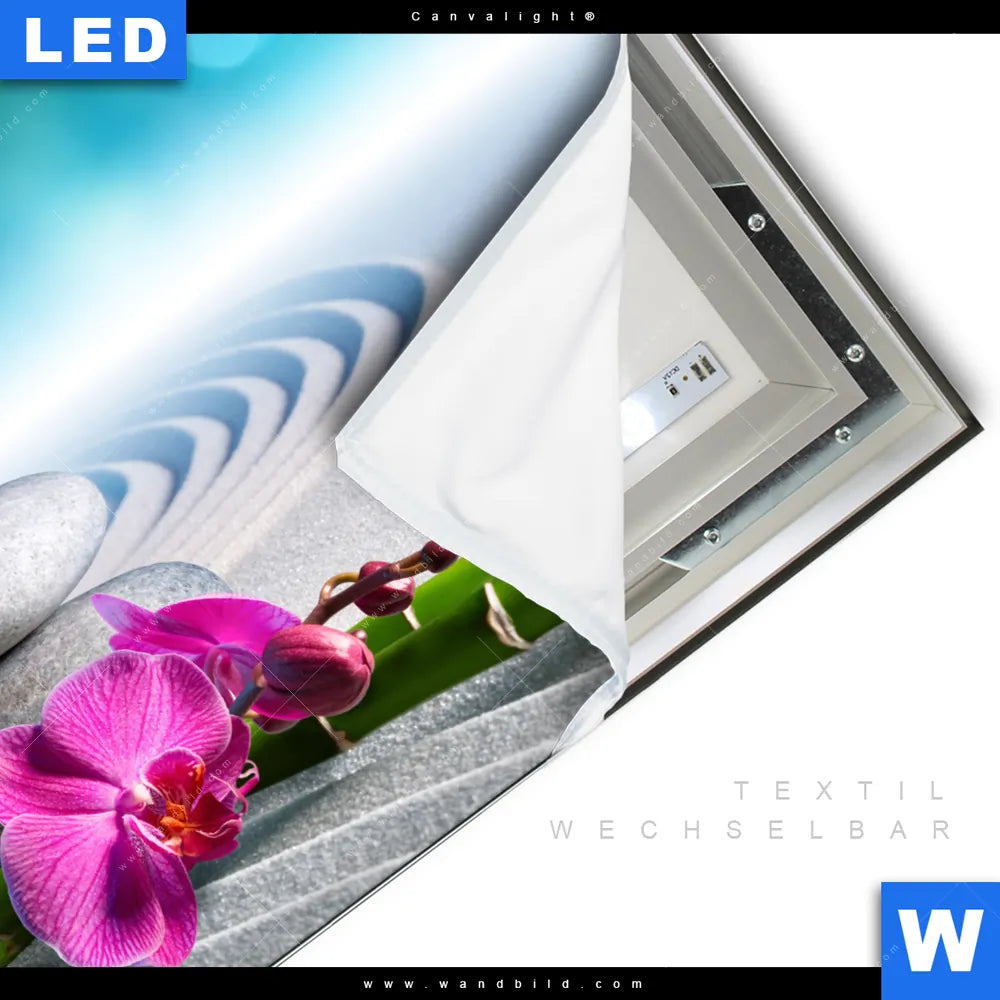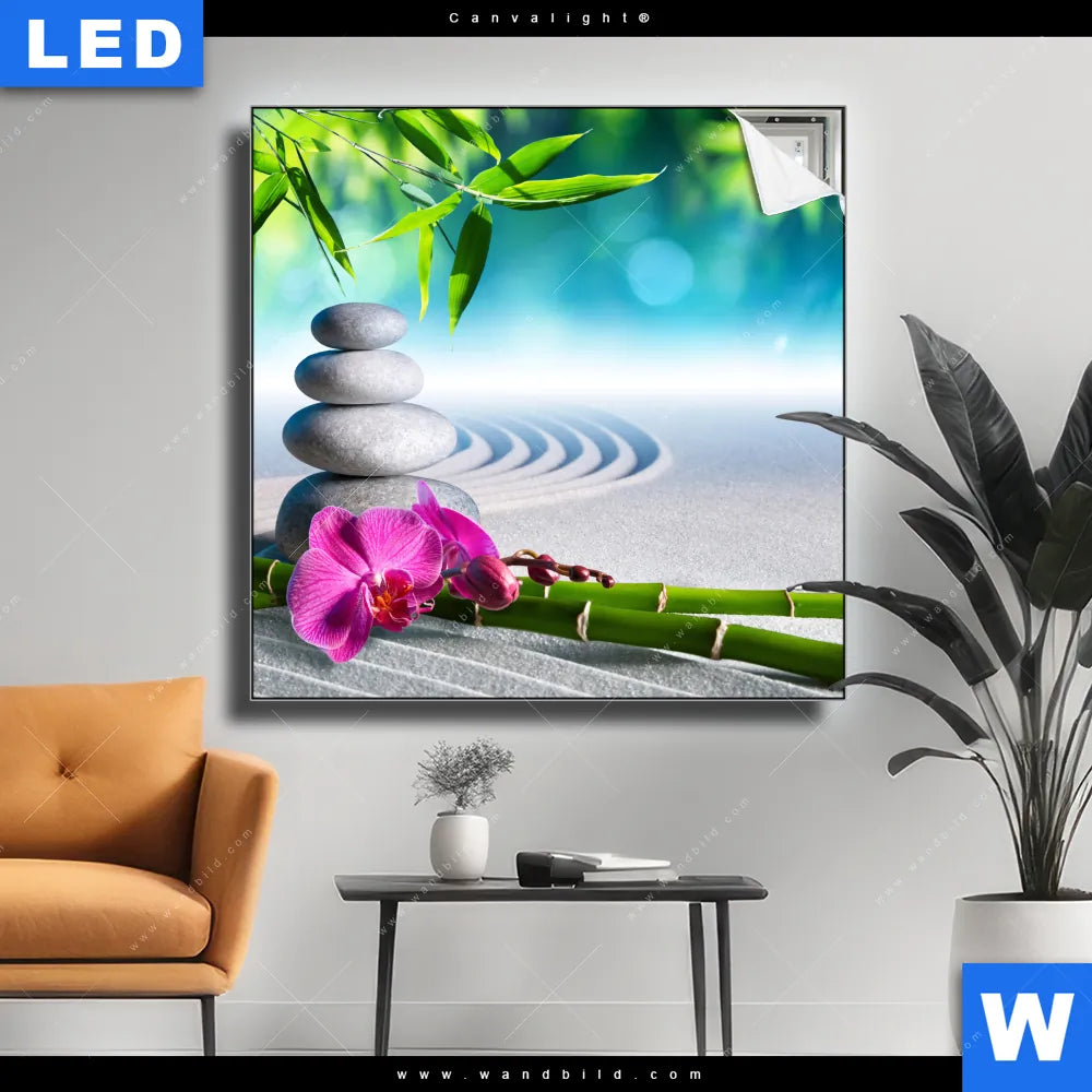 Canvalight® TEX Leuchtbild | Orchidee & Zensteine | Quadrat