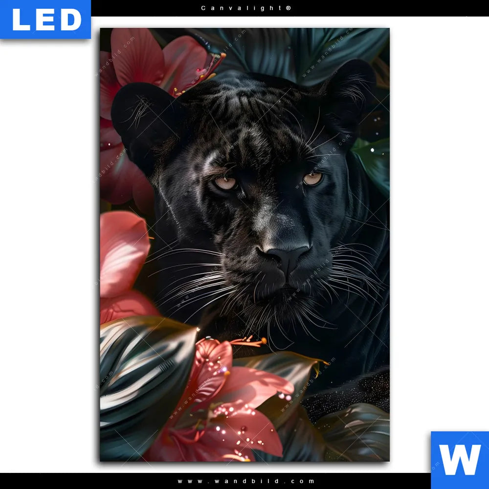 Canvalight® Leuchtbild | Panther und rote Blüten | Hochformat