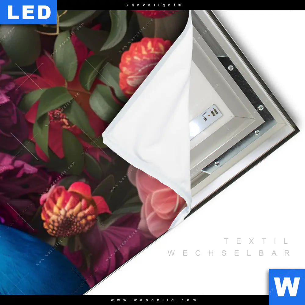 LED-Textilrahmen-Bild mit austauschbarem Tierwelt, Blumen - Botanik Textil-Druck (Wechselbild)