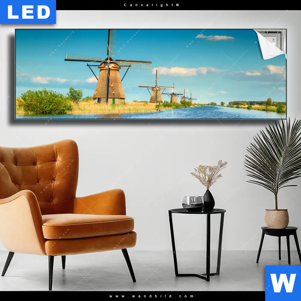 Canvalight® Leuchtbild | Romantik zwischen Windmühlen | Panorama