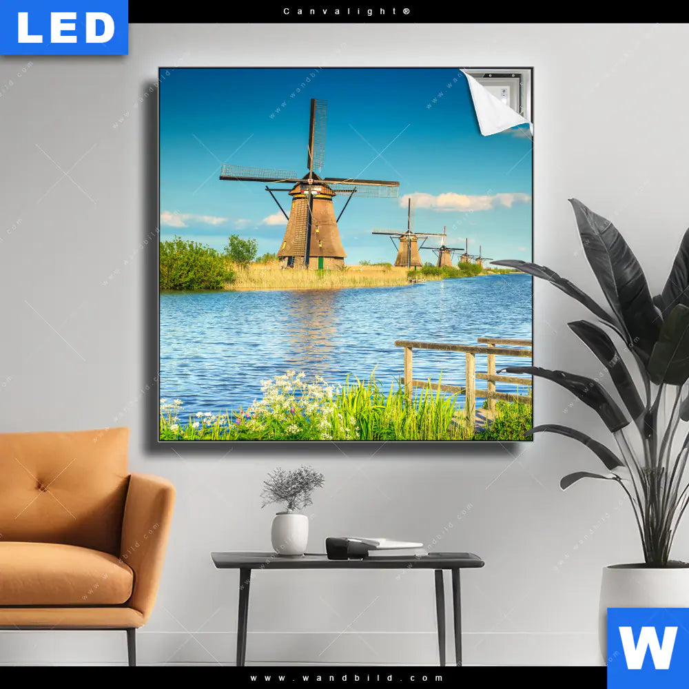 Canvalight® Leuchtbild | Romantik zwischen Windmühlen | Quadrat